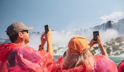 The 20-minute Voyage to the Falls boat tour, sailing from Niagara Falls, Canada, brings guests on the journey of a lifetime. Enjoy stunning views of the Niagara Gorge, American Falls, and Bridal Veil Falls, and come face-to-face with the famous Canadian Horseshoe Falls. Feel the thundering roar, awesome power, and amazing mist (a protective souvenir recyclable mist poncho is provided) that come along with these natural wonders or, ride after sunset for a light-mist experience with the illumination of the Falls.